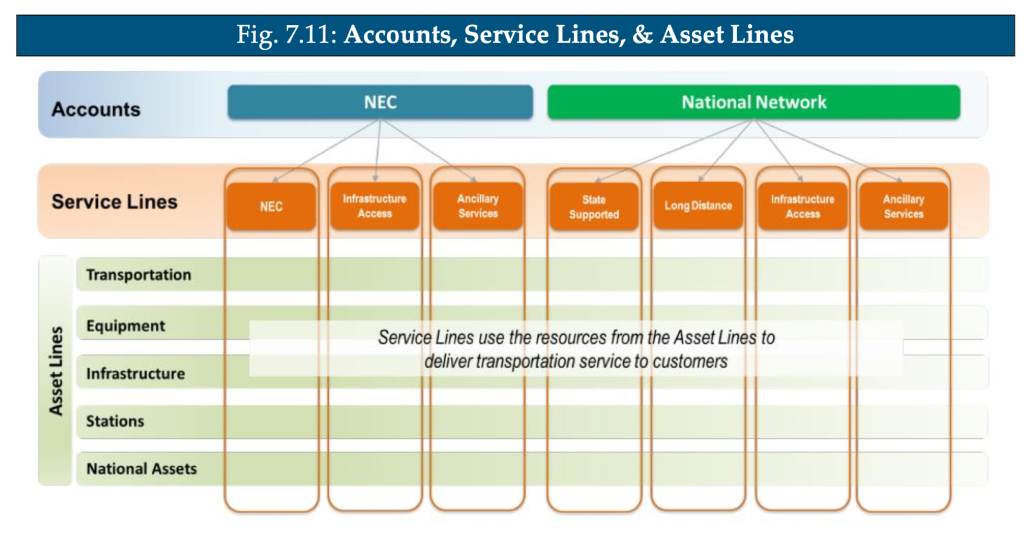 FAST also mandated a separate “Asset Line” breakdown, of which there are five: Transportation, Equipment, Infrastructure, Stations, and National Assets/Corporate Services. (Both the service lines and asset lines are fully defined on pages 134-137 of the FY26 budget request.)