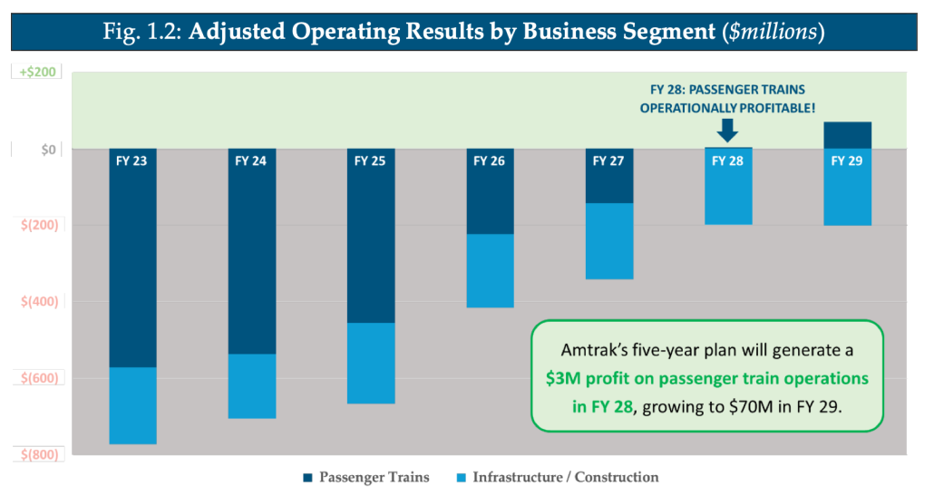 While both sides show a significant loss in FY 2026, Amtrak can now project the train service side of things to get back to break-even in just two more years (actually a $3 million profit, with a $70 million operating profit the following year), while the construction business continues to run at an operating loss of around $200 million per year (managing a gigantic capital program):