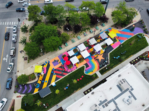 In partnership with the local SSA, Alderman’s Office (40th Ward), Chicago’s Department of Planning and Development, the city Department of Transportation (CDOT), the property owner, residents, and local artists, the future Ainslie Arts Plaza began to take shape via CDOT’s Make Way For People Program.
