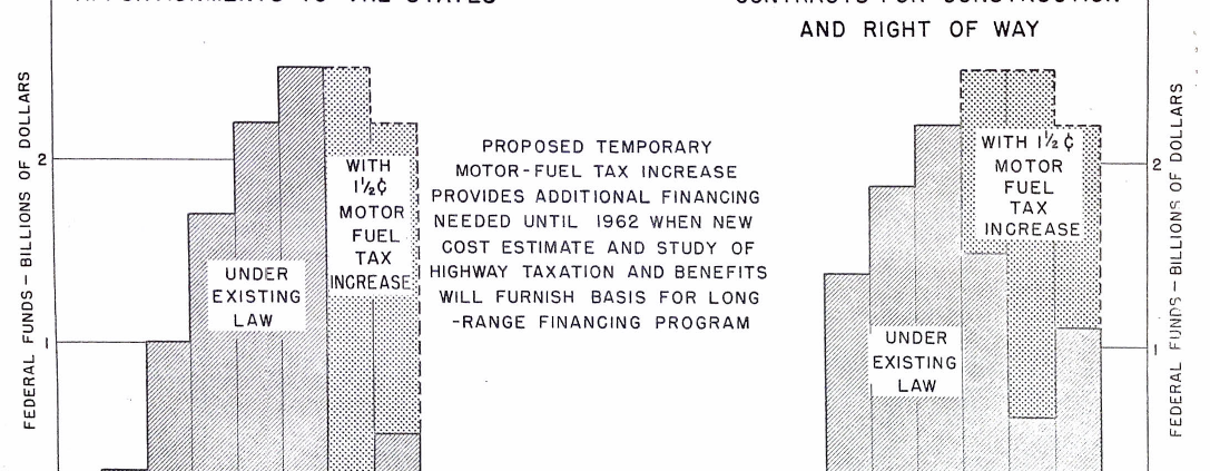 September 2, 2019 – In January 1959, President Eisenhower asked Congress to increase the federal gasoline tax by 50 percent in order to prevent the Highway Trust Fund from running out of money later that year. Congress and the states did not receive the request well.