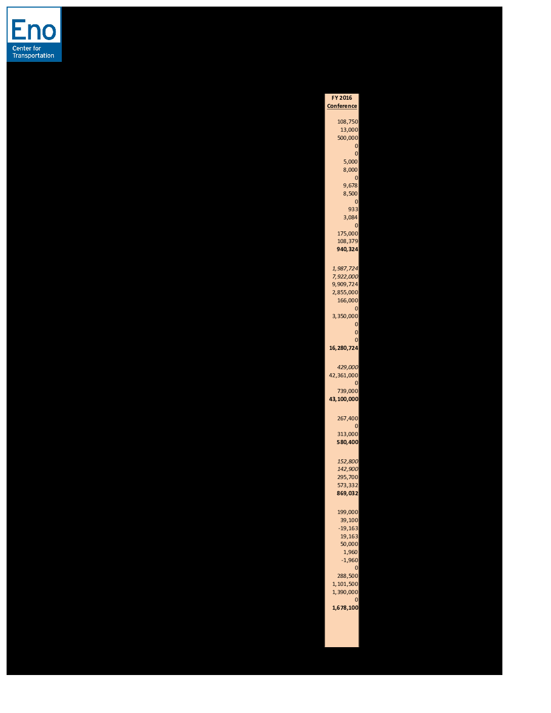 FY 2016 Omnibus Appropriations – USDOT Account-Level Table