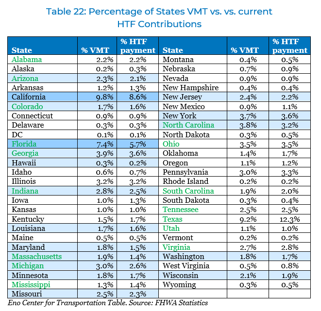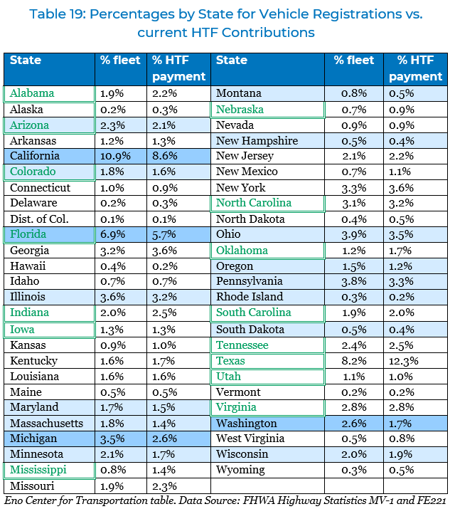 Achieving solvency could be an opportunity to update apportionments to reflect changes in population and driving patterns that have occurred in the past twenty years. Politically, it would be likely be easiest to renegotiate formulas in the context of increasing spending as well as revenues, as that would make it possible to update formulas and still avoid any state receiving a smaller apportionment than they received in the prior year. If new revenues backfill the current shortfall without any increase to total spending, then any change to the distribution of HTF dollars would result in winners and losers.
